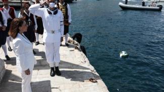 Στη συνέχεια η Πρόεδρος της Δημοκρατίας ξεναγήθηκε στο Ιστορικό Αρχείο – Μουσείο της Ύδρας και ολοκλήρωσε την επίσκεψή της στο νησί με τη ρίψη στεφάνου στη θάλασσα προς τιμήν των ναυμάχων του 1821.