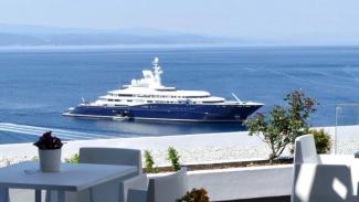 Η πολυτελής θαλαμηγός του σεΐχη αγκυροβόλησε στις 11 στον όρμο της ακτής "Μάραθα", βραβευμένη επί πολλά χρόνια με την "Γαλάζια Σημαία" και απέναντι από το πολυτελές εμβληματικό ξενοδοχείο "Skiathos Palace", προκαλώντας τον θαυμασμό του κόσμου αλλά και θέμα συζητήσεων,τόσο για τους Σκιαθίτες όσο και για τους χιλιάδες επισκέπτες που έχουν κατακλύσει το νησί για το τριήμερο του Αγίου Πνεύματος.