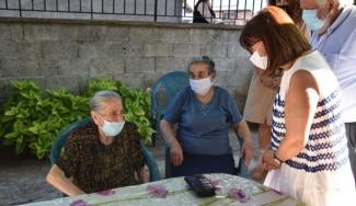 «Ήσασταν και είσαστε οι γιαγιάδες όλων μας. Μας κάνατε περήφανους και σας ευχαριστούμε για αυτό», τόνισε η κ. Σακελλαροπούλου. Περιτριγυρισμένες από παιδιά, εγγόνια και δισέγγονα στην αυλή του προσφυγόσπιτου της Ευστρατίας Μαυραπίδου, οι δύο γυναίκες ευχαρίστησαν την Πρόεδρο της Δημοκρατίας για την επίσκεψη και την τιμή, και την κέρασαν παραδοσιακό ντόπιο αμυγδαλένιο μπακλαβά.
