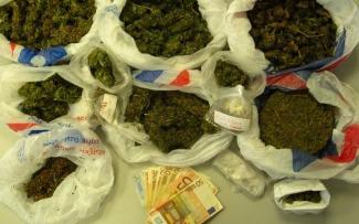 - δύο νάιλον συσκευασίες με κάνναβη, συνολικού βάρους 100 γραμμαρίων,