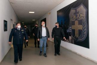 Ο Υπουργός Προστασίας του Πολίτη Τάκης Θεοδωρικάκος συνοδευόμενος από τον Αρχηγό της Ελληνικής Αστυνομίας, Αντιστράτηγο Μιχαήλ Καραμαλάκη επισκέφθηκε σήμερα τις εγκαταστάσεις της Ειδικής Κατασταλτικής Αντιτρομοκρατικής Μονάδας (ΕΚΑΜ) στο Μαρκόπουλο Αττικής. Εκεί, σε εκτενή σύσκεψη ο Υπουργός ενημερώθηκε από τον διοικητή, Αστυνομικό Υποδιευθυντή Πέτρο Τζεφεράκο για τη λειτουργία της ειδικής μονάδας της Αστυνομίας και συζητήθηκαν και αποφασίστηκαν μια σειρά μέτρων για την αναβάθμιση των υποδομών και του εξοπλισμού.