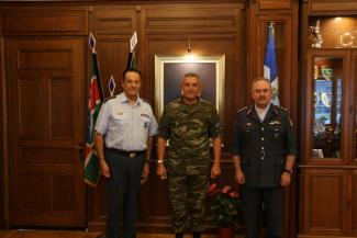 Ο Διοικητής 1ης ΣΤΡΑΤΙΑΣ/EU-OHQ Αντιστράτηγος Κωνσταντίνος Φλώρος, υποδέχτηκε σήμερα τον Γενικό Περιφερειακό Αστυνομικό Διευθυντή Θεσσαλίας Ταξίαρχο Αστέριο Μαντζιώκα, ο οποίος προσήλθε συνοδευόμενος από τον Διευθυντή Διεύθυνσης Αστυνομίας Λάρισας Αστυνομικό Διευθυντή Χρήστο Σιμούλη, στο Στρατηγείο της 1ης ΣΤΡΑΤΙΑΣ/EU-OHQ (Στρατόπεδο «NIKΟΛΑΟΥ ΠΛΑΣΤΗΡΑ») στο πλαίσιο εθιμοτυπικής επίσκεψής του, επ’ ευκαιρία της πρόσφατης ανάληψης των καθηκόντων τους.