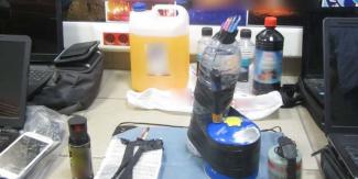 - πλαστικές φιάλες με εύφλεκτο υλικό,
