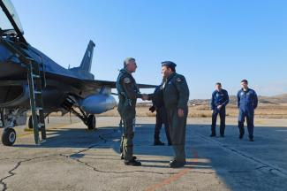 Στο νησί της Λήμνου με διθέσιο μαχητικό πέταξε ο Αρχηγός της Τακτικής Αεροπορίας για τις καθιερωμένες Ευχές στην Ετοιμότητα της 130 ΣΜ και όχι μόνο …Όπου το υποδέχθηκε ο Διοικητής της Μονάδας, Σμήναρχος (Ι) Παναγιώτης Βάλσαμος.