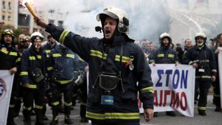 Νέα συγκέντρωση διαμαρτυρίας πραγματοποιούν αυτή την ώρα οι πυροσβέστες πενταετούς θητείας στην πλατεία Συντάγματος.