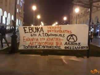 Συγκέντρωση διαμαρτυρίας έξω από το αστυνομικό τμήμα Λευκού Πύργου, στην πλατεία Αριστοτέλους πραγματοποιούν αυτή την ώρα μέλη του αντιεξουσιαστικού χώρου.
