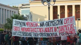 Συγκέντρωση ενάντια στη νέα συμφωνία με τους δανειστές πραγματοποιούν αυτή τη στιγμή στα Προπύλαια μέλη αριστερών οργανώσεων και αναρχικές συλλογικότητες.