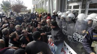 Ένταση επικράτησε το πρωί της Τρίτης έξω από το υπ. Ανάπτυξης όταν συγκεντρωμένοι κτηνοτρόφοι συγκρούστηκαν με δυνάμεις των ΜΑΤ.