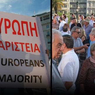 «Μένουμε Ευρώπη» είναι το σύνθημα της μεγαλειώδους συγκέντρωσης που είναι σε εξέλιξη από τις 19.30 στο Σύνταγμα. Ελληνικές σημαίες κυματίζουν στη Βουλή, σε ένα συλληλητήριο χωρίς κομματικές αποχρώσεις. Μέχρι στιγμής περισσότερα από 10.000 άτομα έχουν συγκεντρωθεί στην πλατεία Συντάγματος, ζητώντας την παραμονή της χώρας στο ευρώ και στην ΕΕ, ενώ πλήθος κόσμου έχει ανεβεί στα σκαλιά της Βουλής για να διαδηλώσει.