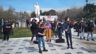 Συγκέντρωση ... μετά μουσικής, στις δώδεκα το μεσημέρι, στο άγαλμα του Βενιζέλου πραγματοποίησαν σύλλογοι και πρωτοβουλίες μουσικών, καλλιτεχνών και φοιτητών μουσικών σπουδών, ζητώντας τη συνέχιση της στήριξης της πολιτείας στον κλάδο και στους ανέργους, ασφαλές άνοιγμα των μουσικών, θεατρικών σκηνών, καταστημάτων και σχολών, με συνθήματα ενάντια στην «καταστολή» και στη «λογοκρισία» στην καλλιτεχνική παραγωγή κ.α.. Στο χώρο πραγματοποιήθηκε μουσική συναυλία, με έγχορδα, πνευστά και κρουστά, με τραγούδια διαμαρτυρίας.