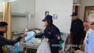Η ιστορία της, για την οποία ενημερώθηκε και ο αστυνομικός διευθυντής Ορεστιάδας Πασχάλης Συριτούδης, συγκίνησε τους αστυνομικούς, με δύο αστυνομικούς της αστυνομικής διεύθυνσης Ορεστιάδας, να της προσφέρουν απαραίτητα είδη για το μωρό.