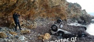 Το λευκό αυτοκίνητο της κοπέλας έκανε «βουτιά» από γκρεμό ύψους περίπου 15 μέτρων προτού καταλήξει στη θάλασσα.