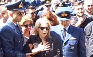 Η συγκίνηση κορυφώθηκε με τον αποχαιρετισμό του νεκρού πιλότου από τους συγγενείς και την κατάθεση στεφάνων από την πολιτική και στρατιωτική ηγεσία του ΥΠΕΘΑ.