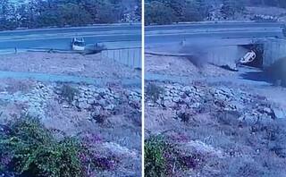 Κάμερα καταστήματος κατέγραψε τις συγκλονιστικές στιγμές που ένα αυτοκίνητο στην Κρήτη εξετράπη της πορείας του, προσέκρουσε στις μεταλλικές μπάρες και «προσγειώθηκε» με την οροφή σε δημοτικό δρόμο.