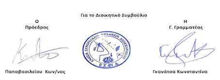 Β. Για την Ελεγκτική Επιτροπή της Ένωσης Συνοριακών Φυλάκων εκλέχθηκαν :