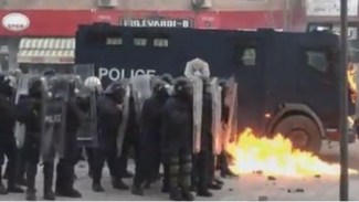 Η κατάσταση ξέφυγε από τον έλεγχο με το κτίριο της κυβέρνησης να τυλίγεται στις φλόγες από τις βόμβες μολότοφ των διαδηλωτών.