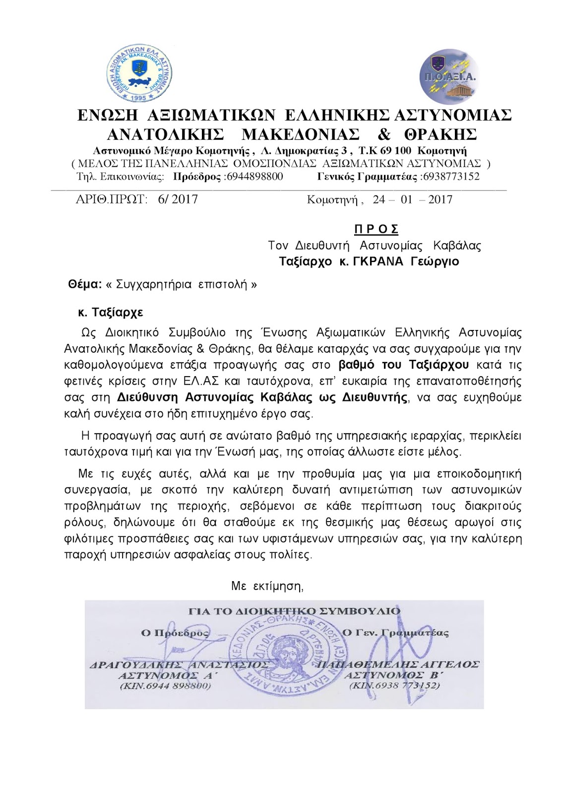 Εικόνα 09:14 | 26/01/2017 ΚΡΙΣΕΙΣ ΕΛΛΗΝΙΚΗΣ ΑΣΤΥΝΟΜΙΑΣ ΕΝΩΣΗ ΑΞΙΩΜΑΤΙΚΩΝ ΕΛΛΗΝΙΚΗΣ ΑΣΤΥΝΟΜΙΑΣ ΑΝΑΤΟΛΙΚΗΣ ΜΑΚΕΔΟΝΙΑΣ & ΘΡΑΚΗΣ ΣΥΝΔΙΚΑΛΙΣΤΙΚΕΣ ΕΝΩΣΕΙΣ ΕΛ.ΑΣ.