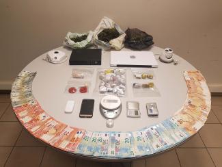 - Αστυνομικοί του Τμήματος Γενικών Υποθέσεων της ανωτέρω Υπηρεσίας συνέλαβαν τον 33χρονο στην περιοχή των Αμπελοκήπων, καθώς στην κατοχή του και σε έρευνες δύο οικιών στις οποίες διέμενε στην ίδια περιοχή, βρέθηκαν μεταξύ άλλων και κατασχέθηκαν: