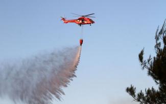 Στην κατάσβεσή της συμμετέχουν 24 πυροσβέστες με 10 οχήματα και από αέρος κάνει ρίψεις ένα ελικόπτερο.