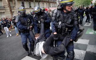 Προτού οι διαδηλωτές φθάσουν στην πλατεία της Βαστίλης, μερικές δεκάδες κουκουλοφόροι προκάλεσαν ζημιές σε στάσεις λεωφορείων, έσπασαν βιτρίνες καταστημάτων στην οδό Λυόν και εκτόξευσαν αντικείμενα εναντίον των δυνάμεων ασφαλείας. Οι αστυνομικές δυνάμεις απάντησαν με χρήση αντλιών νερού υπό πίεση και δακρυγόνα.