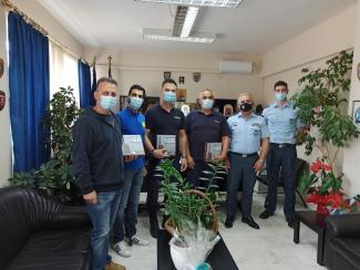 Γνωρίζεται ότι την Τρίτη 15 Ιουνίου 2021, η Ένωση Αξιωματικών ΕΛ.ΑΣ. Ανατολικής Μακεδονίας & Θράκης εκπροσωπούμενη από τον εκτελεστικό γραμματέα του Δ.Σ. Αστυνόμο Α΄ ΤΣΙΑΜΗ Νικόλαο και τον οργανωτικό γραμματέα Υπαστυνόμο Α΄ ΣΑΚΕΛΑΡΙΔΗ Σταύρο, πραγματοποίησε επίσκεψη τηρουμένων των υγειονομικών πρωτοκόλλων, με τον Διευθυντή της Δ.Α. Ξάνθης Αστυνομικό Διευθυντή κ. ΓΙΩΡΗ Πασχάλη, τον Διοικητή του Α.Τ. Ξάνθης Αστυνομικό Υποδιευθυντή κ. ΝΑΛΙΑ Αλύπιο, τον Διοικητή του Τ.Α. Ξάνθης Αστυνομικό Υποδιευθυντή κ. ΤΑΧΤΣΙΔΗ Ιωάννη και τον Διοικητή του Τ.Τ. Ξάνθης Αστυνομικό Υποδιευθυντή κ. ΠΟΥΛΙΟ Ιωάννη. Αφορμή αυτής αποτέλεσε η πρωτοβουλία της Ένωσής μας να δωρίσει στις τρείς Υπηρεσίες έδρας της Δ.Α. Ξάνθης, τρεις (3) εύχρηστους φορητούς ασύρματους πομποδέκτες τελευταίας τεχνολογίας, λόγω και της εντατικοποίησης των ληφθέντων μέτρων για την προστασία εξάπλωσης από τον COVID-19. Τους ασυρμάτους παρέλαβαν αυτοπροσώπως κατά την συνάντηση οι προαναφερόμενοι τρεις Διοικητές των Υπηρεσιών έδρας της Δ.Α. Ξάνθης.