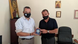 Η ουσιαστική συνάντηση έκλεισε με την απονομή, τιμής ένεκεν, αναμνηστικής πλακέτας στον κ. Υπουργό με το έμβλημα της Ένωσης μας, ως συμβολική αναγνώριση της προσφοράς του.