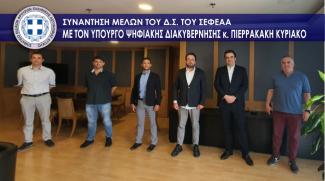 Την Τετάρτη 24 Ιουνίου, αντιπροσωπεία του Δ.Σ. του Σ.Ε.Φ.Ε.Α.Α. πραγματοποίησε συνάντηση στο Υπουργείο Ψηφιακής Διακυβέρνησης και ειδικότερα με τον Υπουργό κ. Πιερρακάκη και το επιτελείο των συνεργατών του.