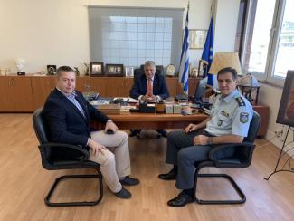 Ο Περιφερειάρχης Αττικής Γ. Πατούλης δέχθηκε στο γραφείο του στην Περιφέρεια, τον Αττικάρχη της ΕΛ.ΑΣ. Γ. Ψωμά και τον Διοικητή της Ασφάλειας Αττικής Π. Τζεφέρη, οι οποίοι του ευχήθηκαν μία καλή και δημιουργική θητεία.