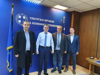 την 23.12.2019 η Ομοσπονδίας μας, πραγματοποίησε συνάντηση στο Υπουργείο Εργασίας και Κοινωνικών Υποθέσεων με τον Υπουργό κ. Ιωάννη Βρούτση και τους συνεργάτες τους, μετά από αίτημά μας, προκειμένου να συζητήσουμε τα εκκρεμή ζητήματα του Κλάδου μας και να δοθούν λύσεις στα κάτωθι θέματα που μας απασχολούν: