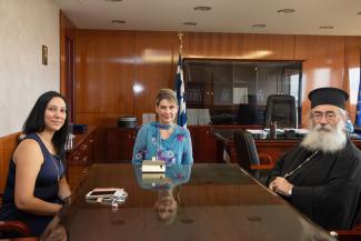 Η Υφυπουργός Προστασίας του Πολίτη κ. Κατερίνα Παπακώστα-Σιδηροπούλου, είχε προχθές το μεσημέρι εθιμοτυπική συνάντηση με τον Αρχιεπίσκοπο Σινά κ.κ. Δαμιανό.