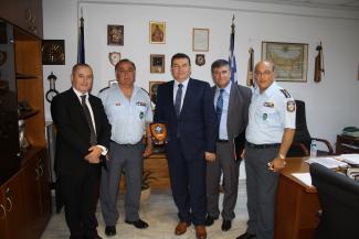 Στο γραφείο του Γενικού Αστυνομικού Διευθυντή Θεσσαλονίκης, Υποστράτηγου Βασίλειου Κιμ. ΜΩΥΣΙΔΗ, πραγματοποιήθηκε παρουσία του Γενικού Αστυνομικού Διευθυντή Περιφέρειας Κεντρικής Μακεδονίας Υποστράτηγου Νικόλαου ΜΠΑΝΤΟΥΒΑΚΗ και Ανώτερου Αξιωματικού της Υποδιεύθυνσης Δίωξης Ναρκωτικών της Διεύθυνσης Ασφάλειας Θεσσαλονίκης Αστυνόμου Α’ Σπυρίδωνα ΚΛΕΙΤΣΙΩΤΗ, εθιμοτυπική επίσκεψη του Αρχηγού της Αλβανικής Αστυνομίας, κ. CAKO HAKI , ο οποίος συνοδευόταν από τον Γενικό Διευθυντή Διεύθυνσης Οργανωμένου Εγκλήματος κ. FASKO IDAJET , τον προϊστάμενο Δίωξης Ναρκωτικών κ. SHKEMBI ARTAN , Αξιωματικό της Δίωξης Ναρκωτικών κ. OSHAFI GJERGJI , τον Αξιωματικό Σύνδεσμο της Αλβανίας στη Θεσσαλονίκη κ. VALERA VASIL και τον Αξιωματικό Σύνδεσμο της Αλβανίας στην Αθήνα κ. LIKA ANDI .