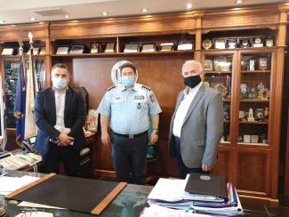 Συνοδευόμενος από τον Αντιδήμαρχο Κοινωνικής Πρόνοιας και Ανάπτυξης Νίκο Καραπάνο ο Δήμαρχος συνάντησε τον κ. Καραμαλάκη στο Αρχηγείο και επί αρκετή ώρα του ανέλυσε τα προβλήματα της παραβατικότητας που παρουσιάζονται στο Δήμο.