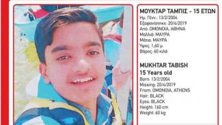 Σύμφωνα με όσα αναφέρει το Χαμόγελο του Παιδιού, στις 20/4/2019, και ώρα 18:00, εξαφανίστηκε από την περιοχή της Ομόνοιας στην Αθήνα, ο Μουκτάρ (επ.) Ταμπίς (ον.), 15 ετών, πακιστανικής καταγωγής.