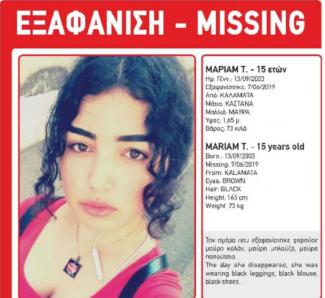 Συναγερμός έχει σημάνει στις Αρχές για την εξαφάνιση της 15χρονης Μαριάμ από την Καλαμάτα.