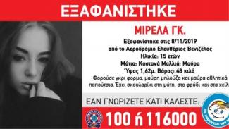 Σύμφωνα με το δελτίο τύπου που εκδόθηκε, η ανήλικη εξαφανίστηκε από το αεροδρόμιο την Παρασκευή 8/11, στις 14:00 και το Χαμόγελο του Παιδιού ενημερώθηκε για την εξαφάνιση σήμερα, προχωρώντας άμεσα στη δημοσιοποίηση των στοιχείων της.