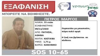 Πρόκειται για τον Πέτρο Μάργο, ο οποίος στις 9 Νοεμβρίου εξαφανίστηκε από την περιοχή των Πατησίων.
