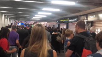 «Όλοι οι επισκέπτες καλούνται να φύγουν από το κτήριο άμεσα. Εκκενώνονται οι όροφοι 1 και 2 του τερματικού σταθμού» είναι το μήνυμα που ακούγεται απο τα μεγάφωνα του σταθμού.