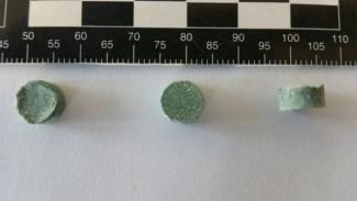 Οι αρχές κατέσχεσαν το χάπι που βλέπετε παραπάνω (πράσινο με άσπρα στίγματα) και θεωρούν ότι αυτό οδήγησε τα προαναφερθέντα άτομα στο νοσοκομείο (αλλά και τον θάνατο), ενώ βρέθηκαν και κάποια άλλα χάπια (γκρίζα με άσπρα στίγματα) και ένα μπλε χάπι το όποιο έφερε πάνω του το σήμα της Adidas.