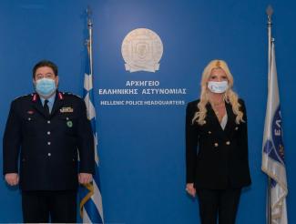 Ο Αρχηγός της Ελληνικής Αστυνομίας, Αντιστράτηγος Μιχαήλ Καραμαλάκης, στο πλαίσιο δράσεων για την 25η Νοεμβρίου, Παγκόσμια Ημέρα για την Εξάλειψη της Βίας Κατά των Γυναικών, συναντήθηκε με την πρόεδρο του Δικτύου SDG 17, Μαρίνα Σταυράκη-Πατούλη και τον Διευθυντή Εταιρικής Επικοινωνίας και Αειφόρου Ανάπτυξης της «Γέφυρα Α.Ε.», Γιάννη Φρέρη.