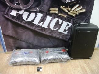 Μετά από έρευνα σε ταξιδιωτική βαλίτσα που κατείχαν, βρέθηκαν και κατασχέθηκαν δύο (2) συσκευασίες περιέχουσες ακατέργαστη κάνναβη, συνολικού μικτού βάρους -10.800- γραμμαρίων, ποσότητα που κατείχαν με σκοπό την περαιτέρω διάθεσή της.
