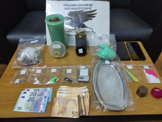 Ακολούθως, σε ενδελεχή έρευνα που πραγματοποίησαν οι αστυνομικοί στην οικία του πρώτου δράστη με τη συνδρομή του αστυνομικού σκύλου ανίχνευσης ναρκωτικών ουσιών ¨ LAIKA ¨, βρέθηκαν και κατασχέθηκαν 4 συσκευασίες με κοκαΐνη συνολικού βάρους 2,8 γραμμαρίων, 1 συσκευασία και 2 δοχεία με ακατέργαστη κάνναβη συνολικού βάρους 276 γραμμαρίων, 1 ζυγαριά ακριβείας, 1 μεταλλικός δίσκος, το χρηματικό ποσό των 1.410 ευρώ, 1 πλαστική κάρτα, 4 πλαστικά καλαμάκια και 1 κινητό τηλέφωνο.