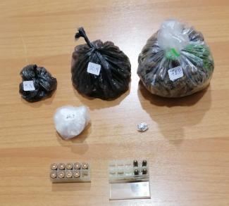 - από την οικία του αλλοδαπού, μια νάιλον συσκευασία με ακατέργαστη κάνναβη βάρους 71,8 γραμμαρίων, μια νάιλον συσκευασία με κοκαΐνη βάρους 14,3 γραμμαρίων και 13 φυσίγγια.
