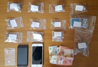 Συγκεκριμένα, στην κατοχή του ενός βρέθηκαν επτά (7) συσκευασίες με ακατέργαστη κάνναβη, συνολικού βάρους 26,9 γραμμαρίων και 45 ευρώ, ενώ στη κατοχή του δεύτερου βρέθηκε μία (1) συσκευασία με ακατέργαστη κάνναβη, βάρους 18,2 γραμμαρίων, την όποια όπως προέκυψε είχε προμηθευτεί από τον πρώτο, έναντι αμοιβής.