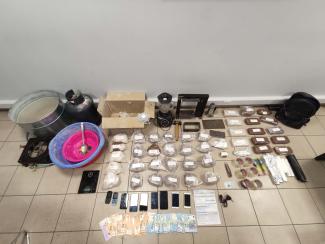 Στο πλαίσιο οργανωμένης επιχείρησης που πραγματοποιήθηκε χθες (23-01-2020), αστυνομικοί του Τμήματος Γενικών Υποθέσεων της Υποδιεύθυνσης Δίωξης Ναρκωτικών Θεσσαλονίκης, με τη συνδρομή αστυνομικών των Τμημάτων Άμεσης Επέμβασης, Δίωξης Ναρκωτικών Ανατολικής Θεσσαλονίκης και Ειδικών Επιχειρησιακών Ομάδων, εντόπισαν και συνέλαβαν τους δράστες σε κατοικία όπου διέμεναν τρείς εξ’ αυτών στην περιοχή του Κορδελιού.