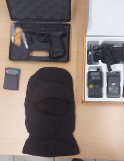 Η μοτοσικλέτα που χρησιμοποίησαν οι δράστες στη ληστεία βρέθηκε και κατασχέθηκε σε οικία (τρίτου) ημεδαπού άνδρα, ενώ επιπλέον βρέθηκε στην οικία του τελευταίου και κατασχέθηκε ένας φορητός πομποδέκτης.