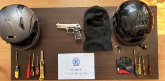 Στον χώρο που διαπράχθηκε η ληστεία εντοπίσθηκε και κατασχέθηκε η μοτοσικλέτα των δραστών, εντός της οποίας βρέθηκαν διάφορα διαρρηκτικά εργαλεία και γάντια.