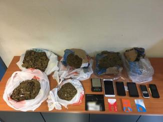 - (5) κινητά τηλέφωνα και (4) πακέτα σύνδεσης κινητής τηλεφωνίας, τα οποία χρησιμοποιούσε για τις παράνομες συναλλαγές του,
