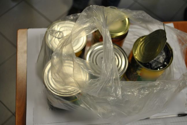 Κατά τη διάρκεια του ελέγχου, σε μία νάιλον συσκευασία, που περιείχε τέσσερις τυποποιημένες κονσέρβες και ένα γυάλινο δοχείο με μέλι, εντοπίστηκαν, επιμελώς κρυμμένα, σε μία από τις ανωτέρω κονσέρβες: