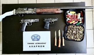 Συνελήφθη πρωινές ώρες της 10-5-2022 στις Αχαρνές, από αστυνομικούς του Τ.Α. Αχαρνών σε συνεργασία με αστυνομικούς της Υποδιεύθυνσης Ασφάλειας Δυτικής Αττικής και της Ο.Π.Κ.Ε., 18χρονος ημεδαπός, κατηγορούμενος για παράβαση της νομοθεσίας περί όπλων. Αναζητείται 26χρονος ημεδαπός κατηγορούμενος για το ίδιο αδίκημα.