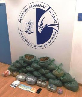Στην κατοχή του καθώς και από την κατ’ οίκον έρευνα, βρέθηκαν και κατασχέθηκαν 25.392 γραμμάρια ακατέργαστης κάνναβης, 960 ευρώ και συσκευή κινητού τηλεφώνου.